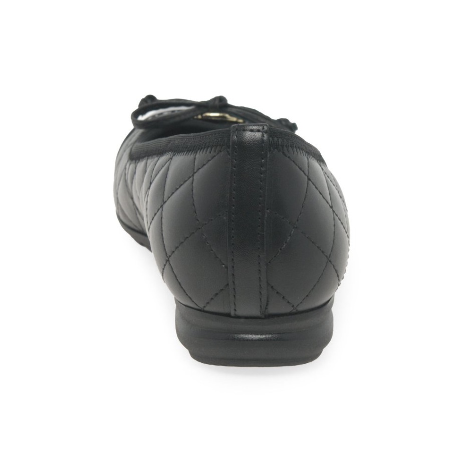 The Gabor Snowdrop is a contemporary ballerina featuring a soft, quilted leather upper and a patent leather toe with bow detailing for added effect. The ridged rubber sole has a 2cm heel for easy height gain. Wear it to the office or on a casual day out, this lightweight piece can be styled with slim-fit pants and skinny jeans.